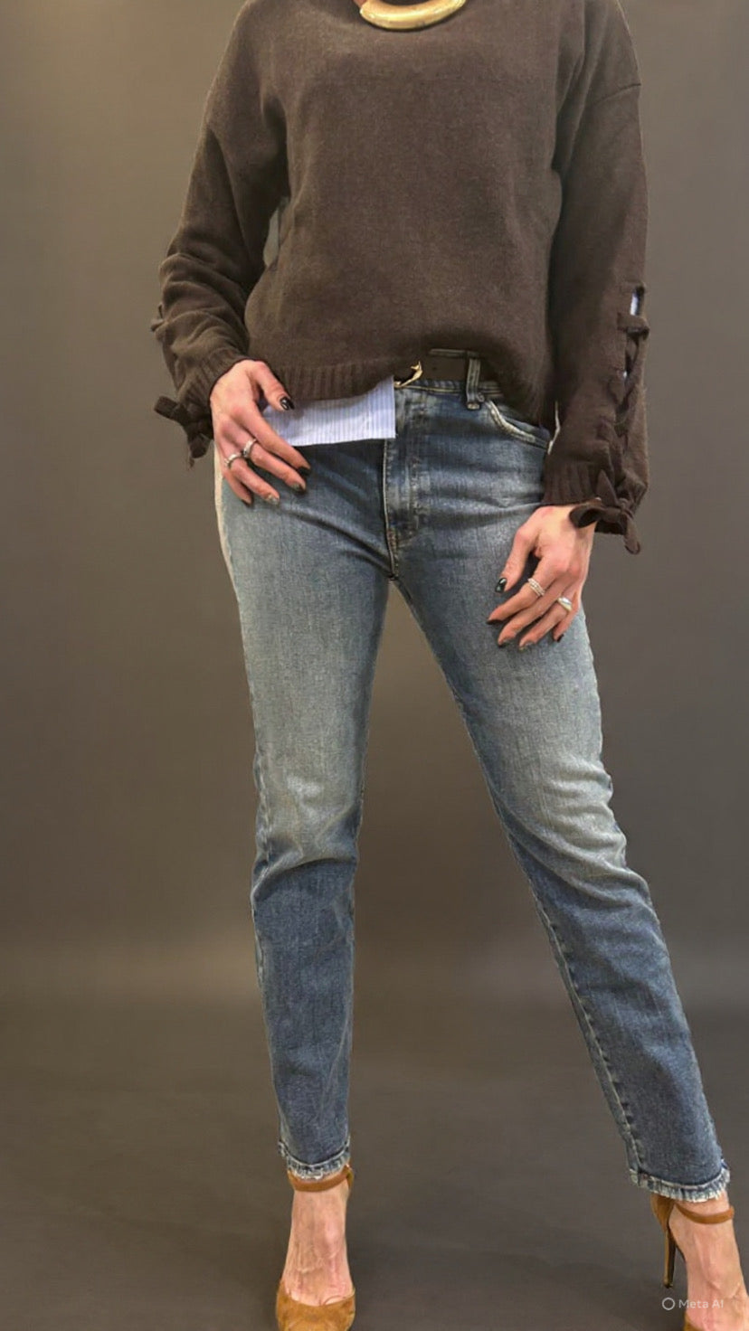 Jeans dal design essenziale e senza tempo, perfetti per valorizzare la silhouette con naturalezza. Il lavaggio medio li rende estremamente versatili, ideali sia per look quotidiani che per abbinamenti più curati.