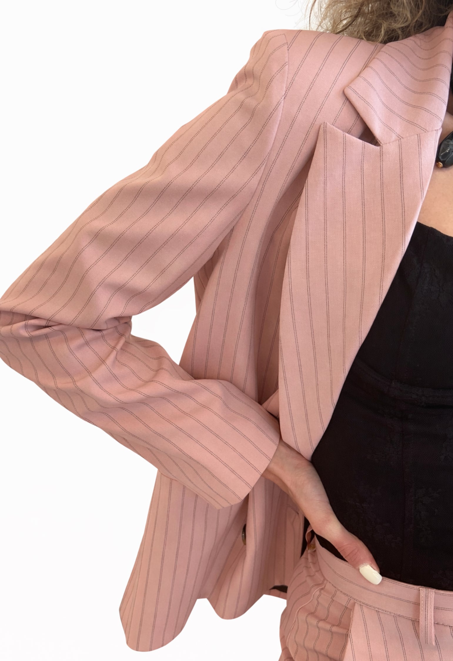 Sta benissimo con il suo pantalone coordinato per un completo deciso e femminile, ma puoi usarlo anche con un jeans o un pantalone chiaro per renderlo più morbido e portabile tutti i giorni.